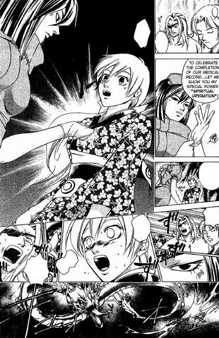 Saisei's specialty. She can make her hands phase through matter and can perform surgeries on people without touching their skin. She used this ability to manipulate Shinrei's water dragon inside Yuya's body